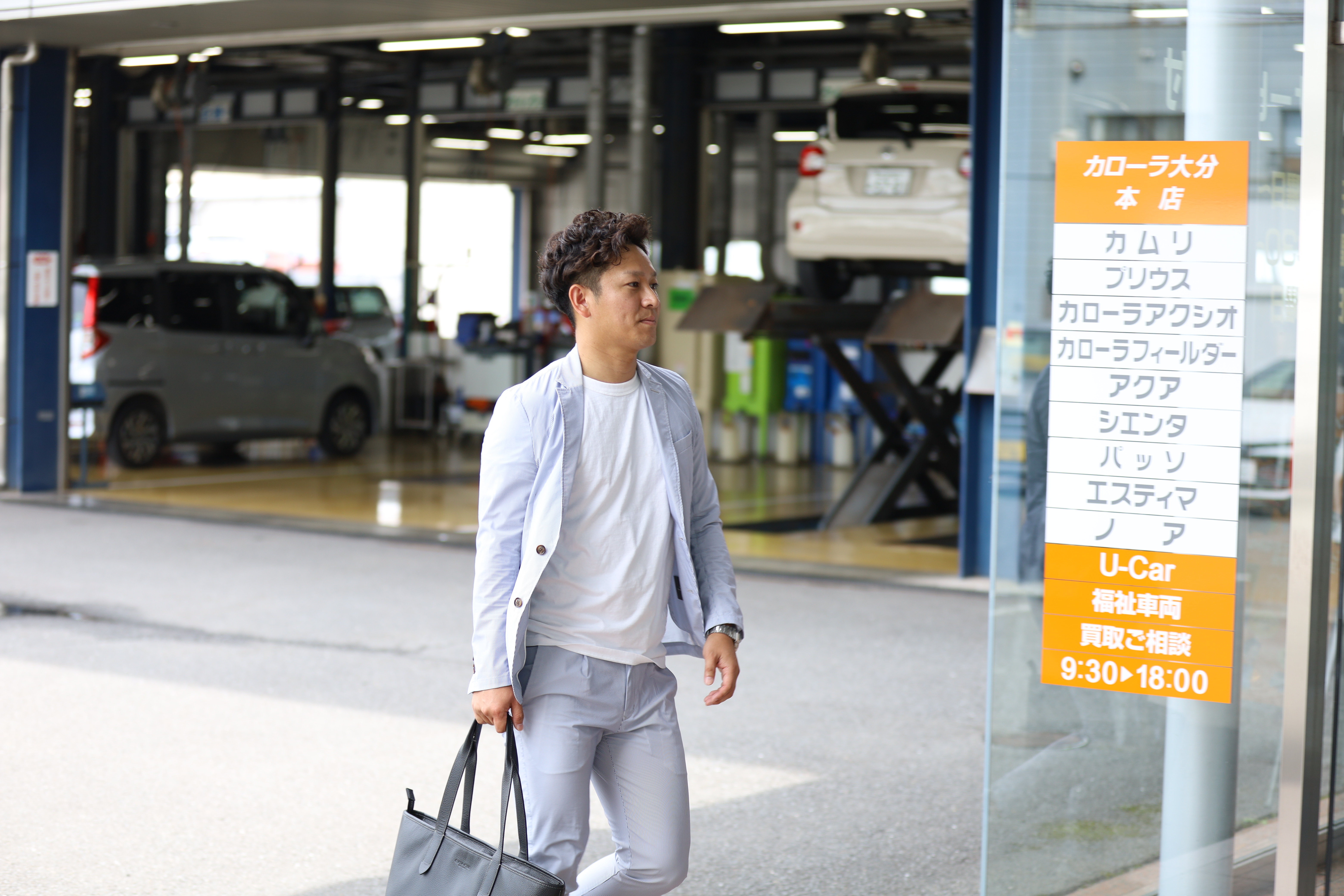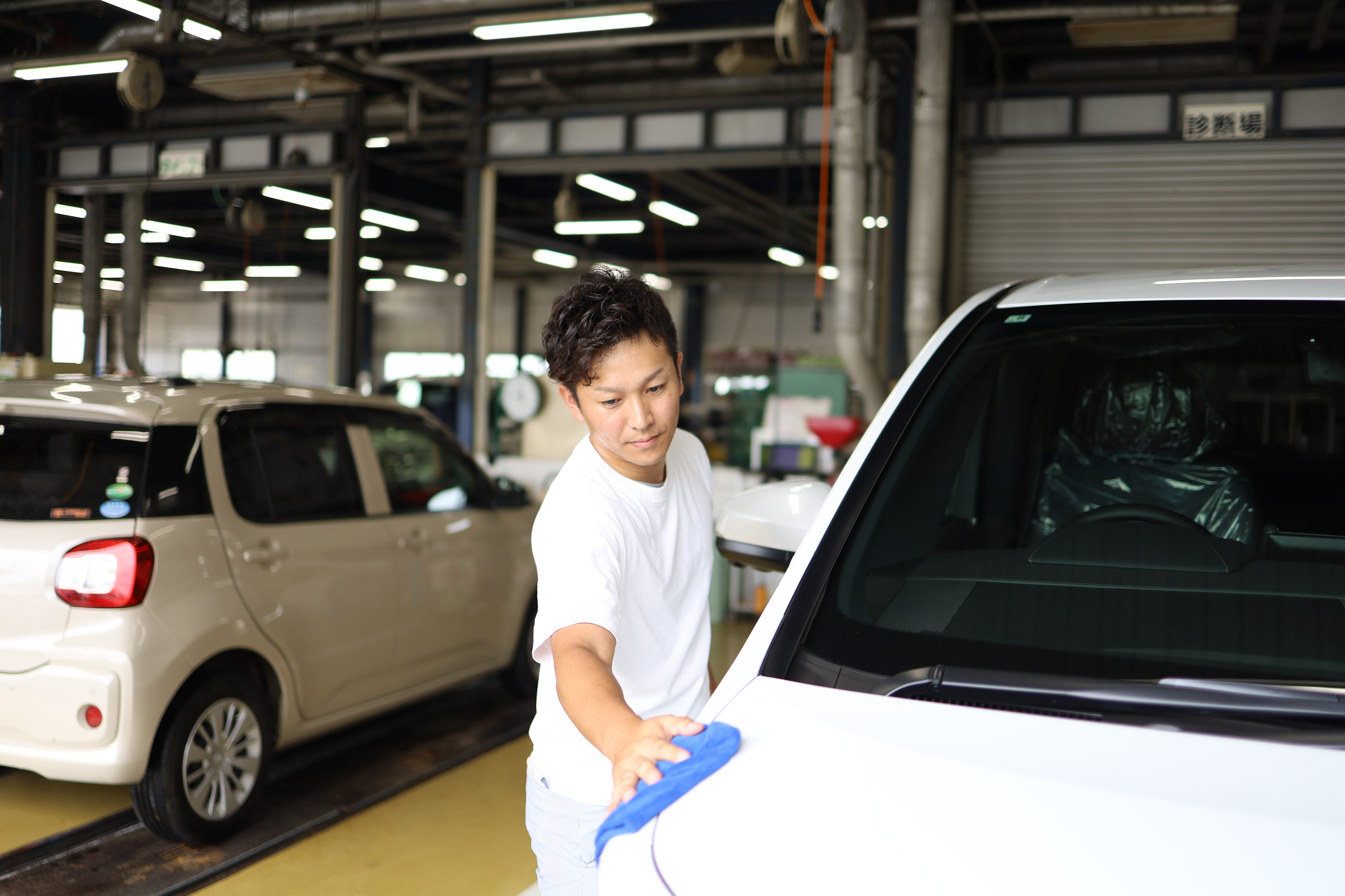 お客さまから『クルマがパンクした』、『クルマの調子が悪い』などの連絡をいただいたら、サービスエンジニアに相談します。お客さまと整備をつなぐ、大事な役割を担っています。お客さまにとって、担当の営業スタッフはトヨタカローラ大分の『窓口』なのです。